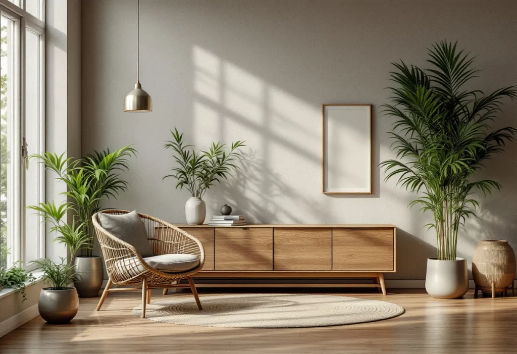 Actuellement, les influences venues de la nature, la préoccupation écologique et le retour à des fondamentaux simples guident une grande partie des tendances déco. On remarque une préférence marquée pour l’intégration de matériaux naturels, notamment le bois brut, le bambou travaillé artisanalement ou le métal sous forme minimaliste.