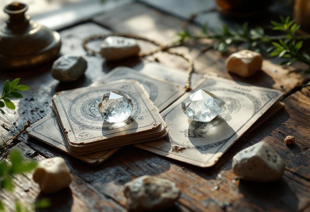 Outre les principaux outils de divination, on peut agrémenter sa pratique de cristaux et pierres qui créent une atmosphère propice à la méditation. Disposer ses accessoires sur une nappe dédiée ou dans un espace paisible renforce l’expérience sensorielle et sacrée.
